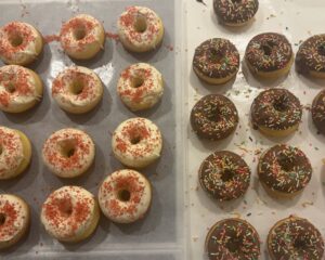 実は私はお菓子作りが趣味で、日頃から色々と作っています今回は“焼きドーナツ”に挑戦!揚げるタイプよりも軽く、仕事の合間でも食べやすいようにと考えました。 型に流し込んで焼き上がりを待つ時間は、少し緊張しながらも楽しいひとときでした