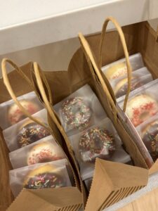 こんにちは!サントラストです! 2月14日はバレンタインデーということで、 少し早いですが、本日2月12日に、 日頃の感謝の気持ちを込めて、今年は焼きドーナツを皆さんにお配りしました!